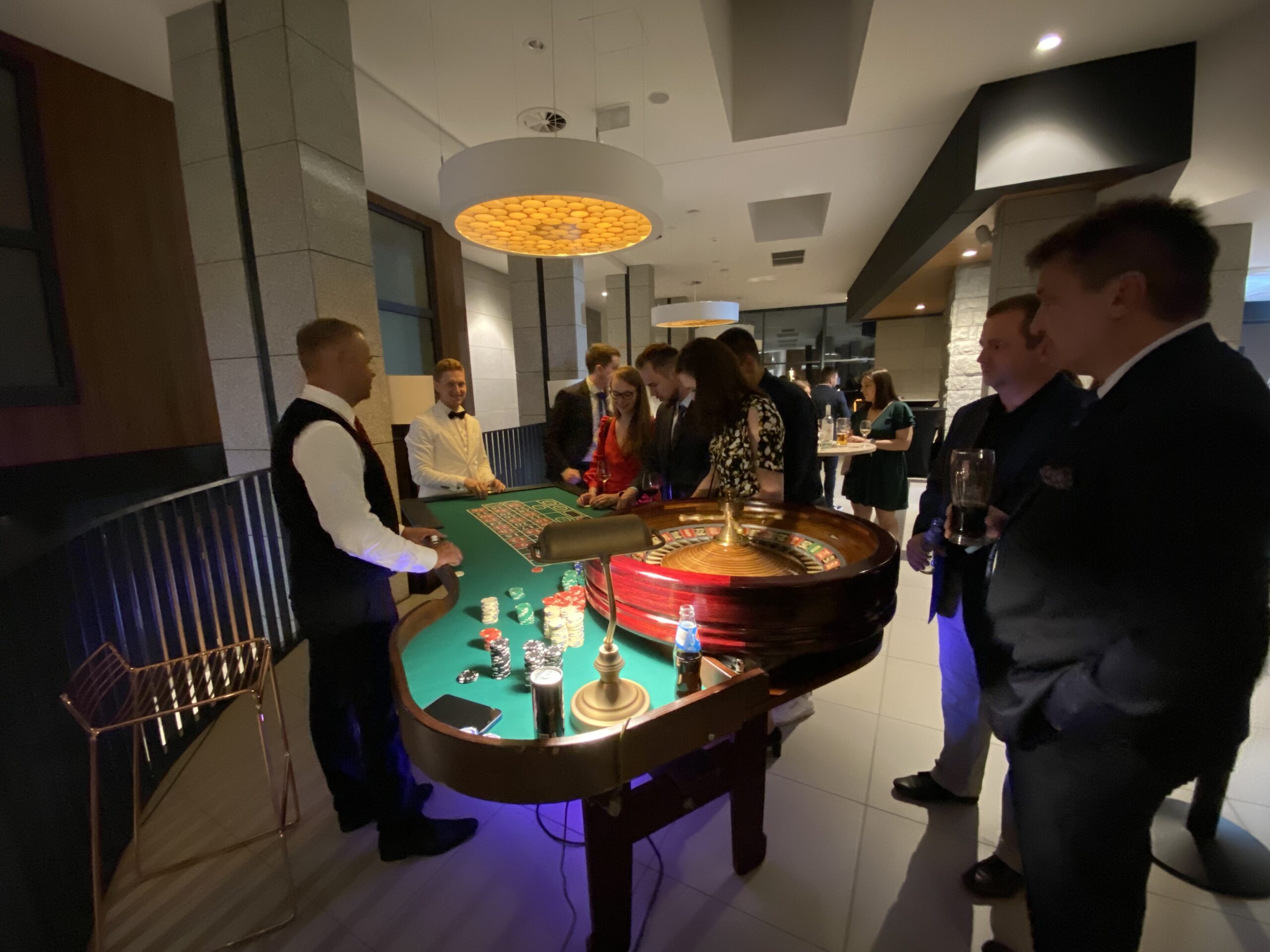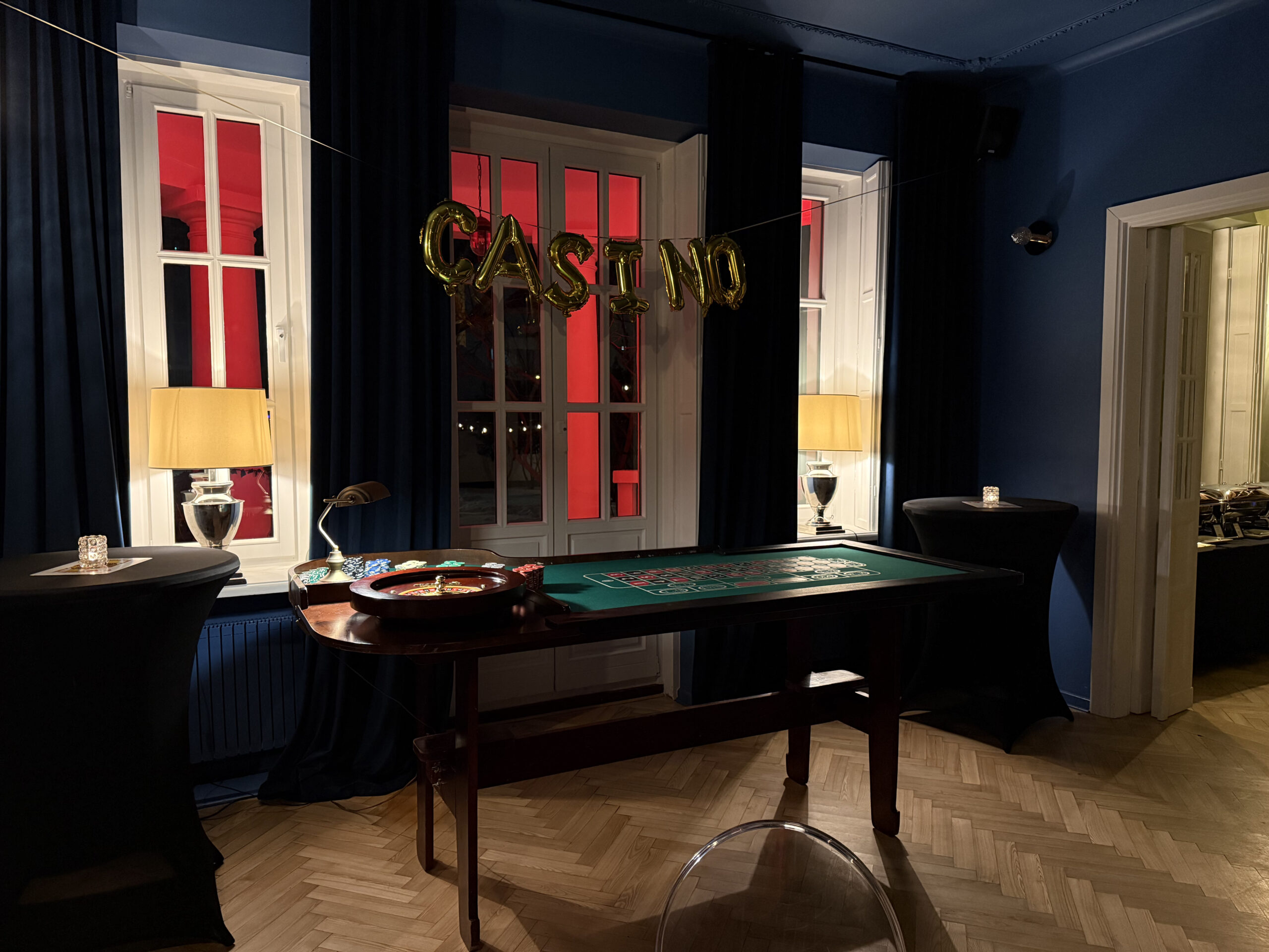 Repliki popularnych stołów do Ruletki, Black Jacka, Kości i Pokera. Na tym urządzeniu nie ma możłiwości przeprowadzania prawdziwych gier hazardowych. Stoły mają standardową wielkość. Cena zawiera wynajem stołu, m.in. Ruletka, Black Jack, Poker wraz z profesjonalną obsługą krupierską. Uprzejmie informujemy, że nie prowadzimy gier losowych, w rozumieniu ustawy o grach losowych, zakładach wzajemnych i grach na automatach z dnia 29 lipca 1992 roku, (tekst jednolity Dz. U. z 1998r roku, Nr 102, poz. 650 z późniejszymi zmianami).