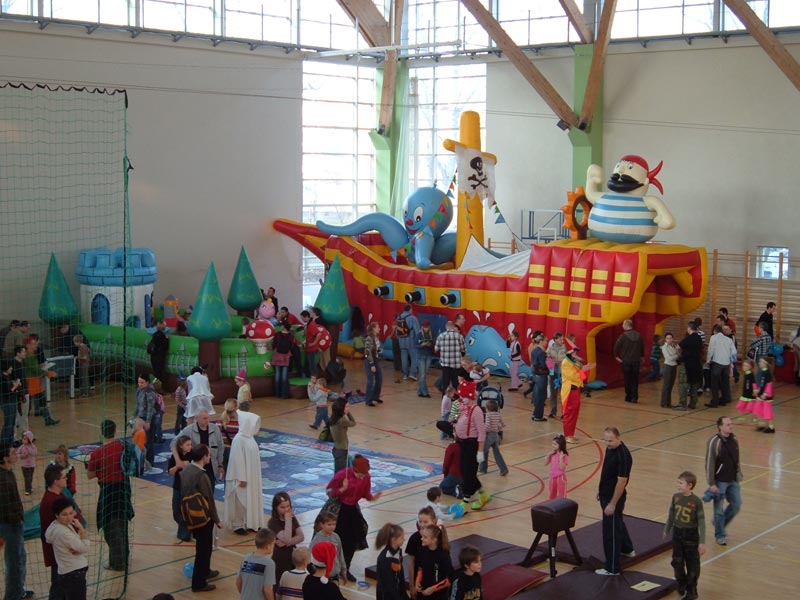 Duży, atrakcyjny "dmuchaniec" w kształcie pirackiego statku. Wewnątrz miejsce do zabawy i skakania oraz mini zjeżdżalnia. Ozdoba każdej imprezy plenerowej. Widoczna z daleka przyciąga wzrok oraz zachęca do zabawy na 13-metrowym pokładzie gdzie oprócz zjeżdżalni i strefy do skakania czają się sylwetki korsarzy i morskich potworów.